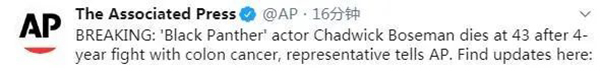 “愿天堂没有病痛,我们将铭记你的传奇,Wakanda Forever!”在向博斯曼表达惋惜和哀悼的同时,也希望大家能够重视他所患的癌症——结直肠癌。