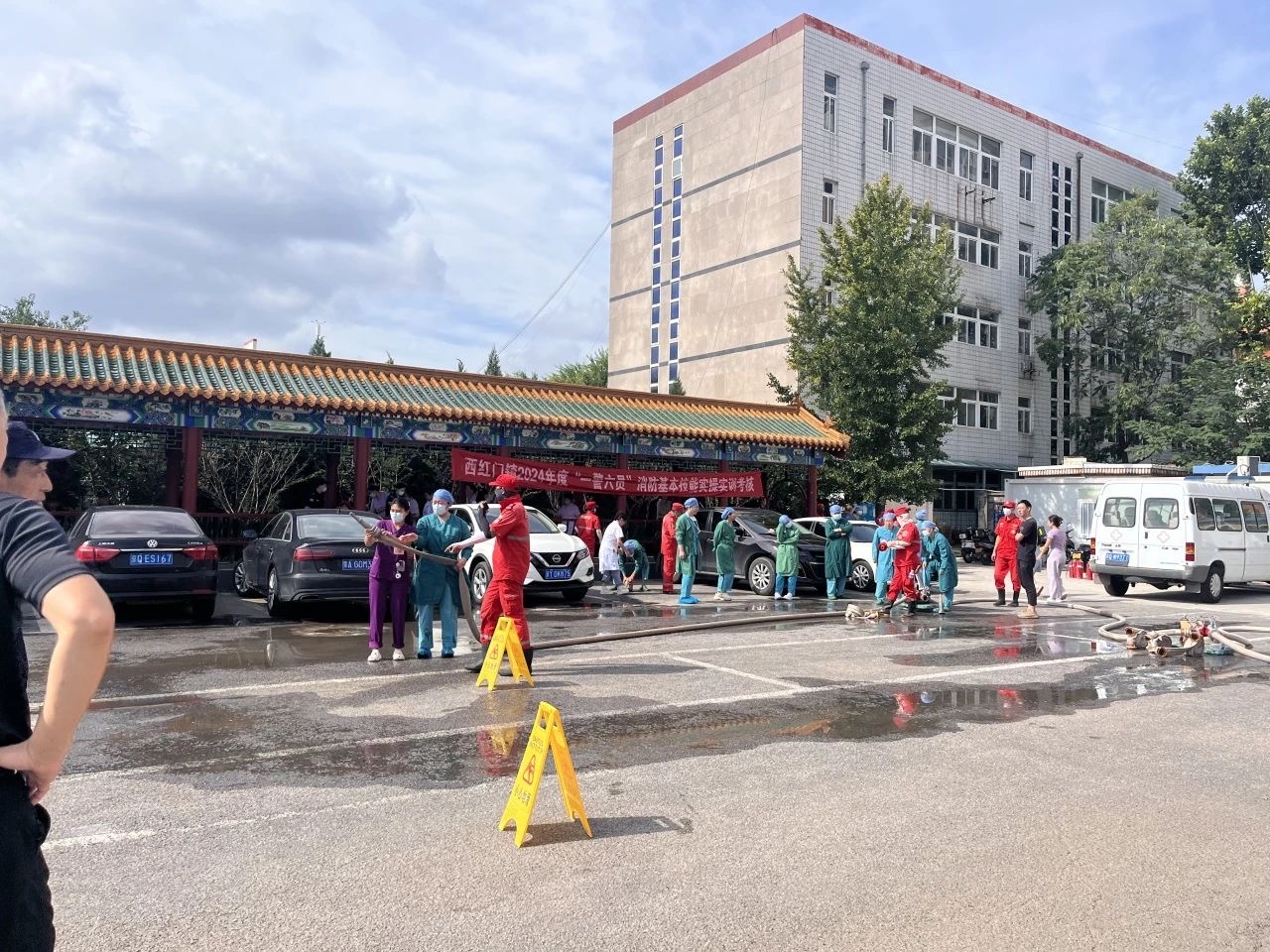 2024年8月21日,北京南郊肿瘤医院职工分批参加“一警六员”消防安全培训、实操演练及考核。以保证每名员工正确掌握火灾初期快速处置方法,提高全体从业人员自防自救能力。