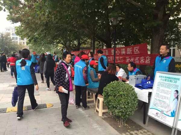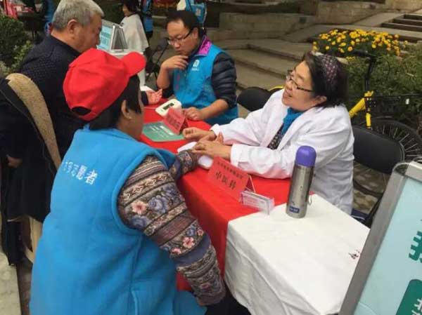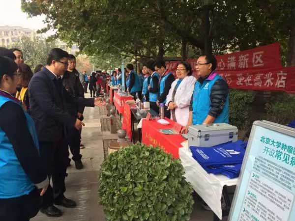 10月25日,北京南郊肿瘤医院防癌志愿者服务队走进康隆园社区,举行健康义诊活动。团市委副书记毛晓刚带队到现场视察、指导工作。