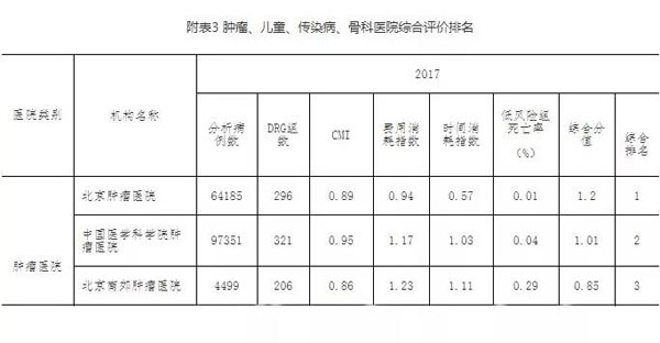 04、2018 月2月12日我院获得北京市卫计委公布的《2017年度北京地区医疗机构及重点专科的住院医疗服务评价报告》(DRGs排名)肿瘤医院类第三名