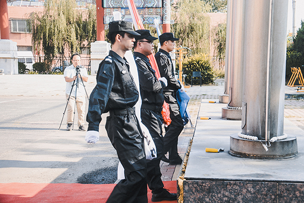 护送鲜艳的五星红旗入场