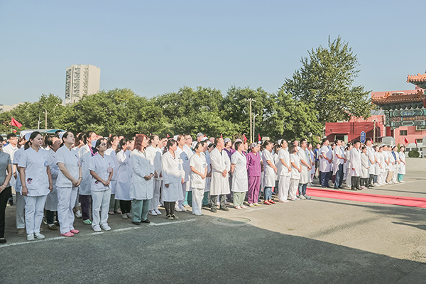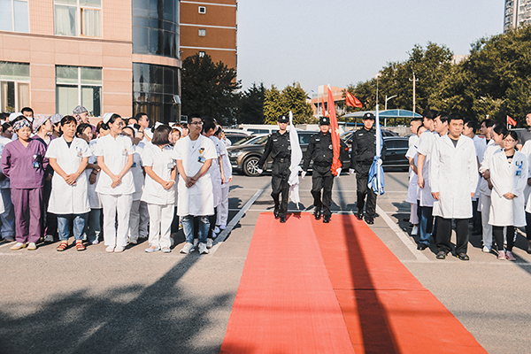 今天的升旗仪式,既是对广大医务人员进行爱国主义和集体主义教育,增强凝聚力、向心力的重要形式,也是我们推进医院文化建设的一项重要内容,将会进一步激发和增强全院广大干部职工的爱国热情和主人翁责任感、使命感,对医院各项建设起着积极地推动作用。今年以来,在医院领导班子的团结带领下、在北京大学肿瘤医院的支持帮助下,全院上下励精图治,艰苦奋斗,坚持“以病人为中心”的服务理念,开拓创新、锐意进取、扎实工作,各项工作顺利推进,正朝着既定的目标阔步前进。对此,我代表医院,对大家的辛勤工作致以衷心的感谢!