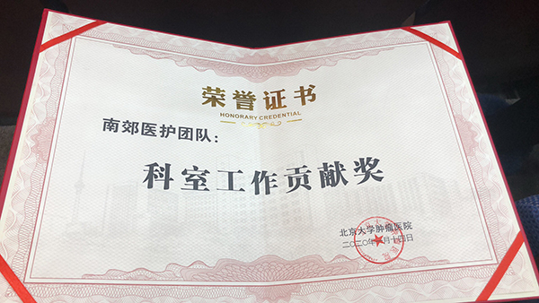 北京南郊肿瘤医院荣获科室工作贡献奖