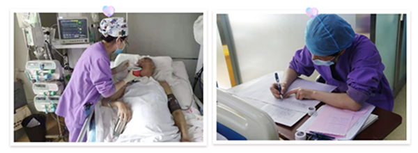监护病房24小时没有陪护,护理人员既要完成各项治疗及护理项目,又要照顾好患者的一切生活护理,如:翻身、拍背、吸痰及吃喝拉撒等,每一个环节都要特别仔细。“由于重症患者活动不便,长时间躺在床上会产生压疮,因此,不管患者体重多重,都需要定时为其翻身。每次到了为“重量级”患者翻身时,体型瘦弱的护士们都心领神会,秒变身,成为‘大力士’。就如监护病房最近收治的一位小腿脂肪肉瘤胸肺转移患者,体重高达160公斤,护理难度特别大,每次都需要3、4个护士协助一起翻身,每次翻身后,护士们都会累的满头大汗。这位患者在我院监护病房住了2个月,在此期间,经过护理人员的精心照料,没有一点压疮现象,也因此监护病房的护理人员们赢得了患者及家属的称赞。