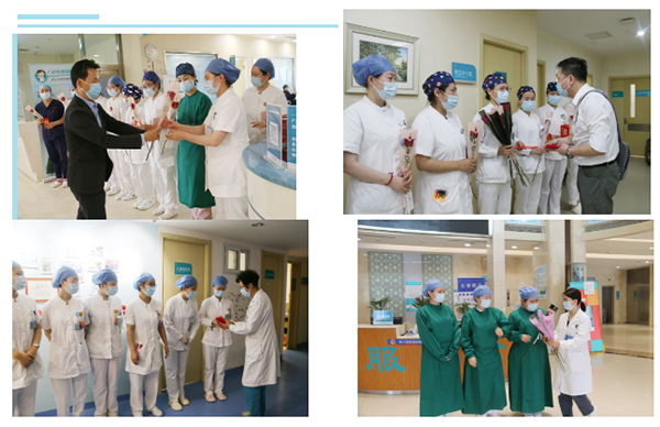 从热闹的门诊到安静的病房,每到一处,院领导都亲手将鲜花送到护士们的手中,向护士们致以节日的祝福和问侯,并对护理团队奉献敬业的精神予以肯定,护士站处处洋溢着节日的喜悦。