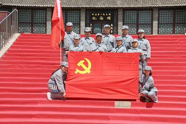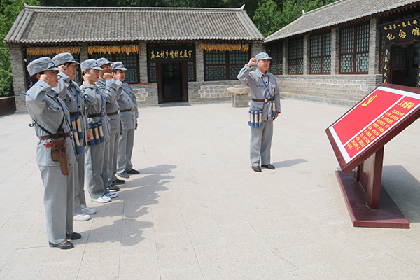 参观结束后,全体党员面对鲜红的党旗,高举右拳,肃穆站立,在鲜红的党旗下重温入党誓言,时刻警醒自己牢记党员身份,铭记历史,牢记宗旨,不忘初心。